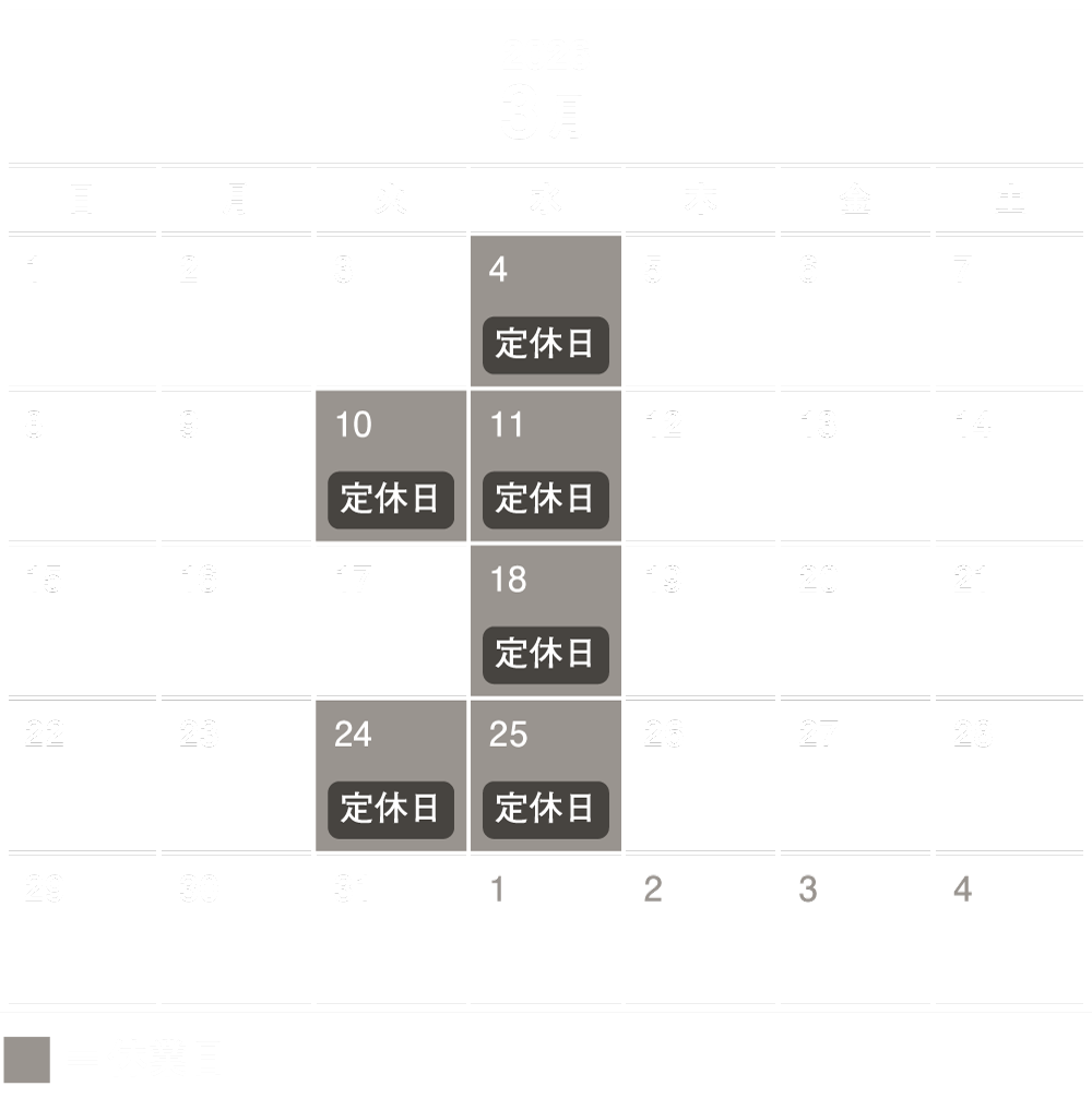 定休日 水曜日・第2・4火曜日